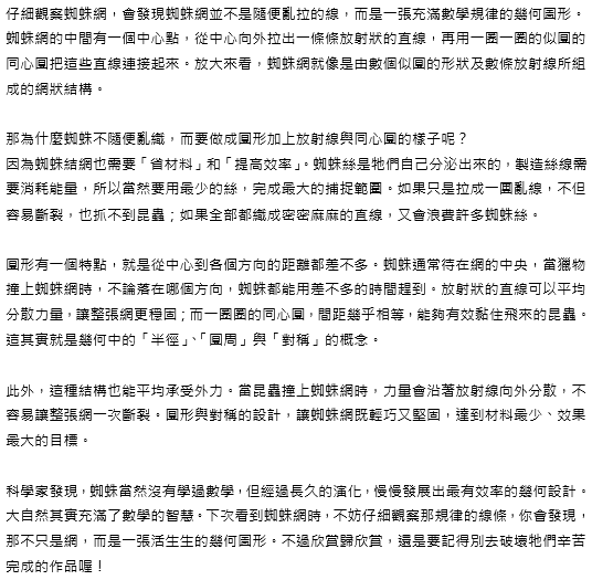 【國小數學】蜘蛛也是小小數學家:蜘蛛網與圓形