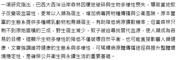 【生物】森林崩壞,人類成為蚊子新獵物:生物多樣性流失引發傳染病危機
