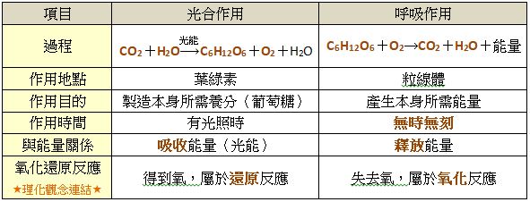 光合作用與呼吸作用的比較