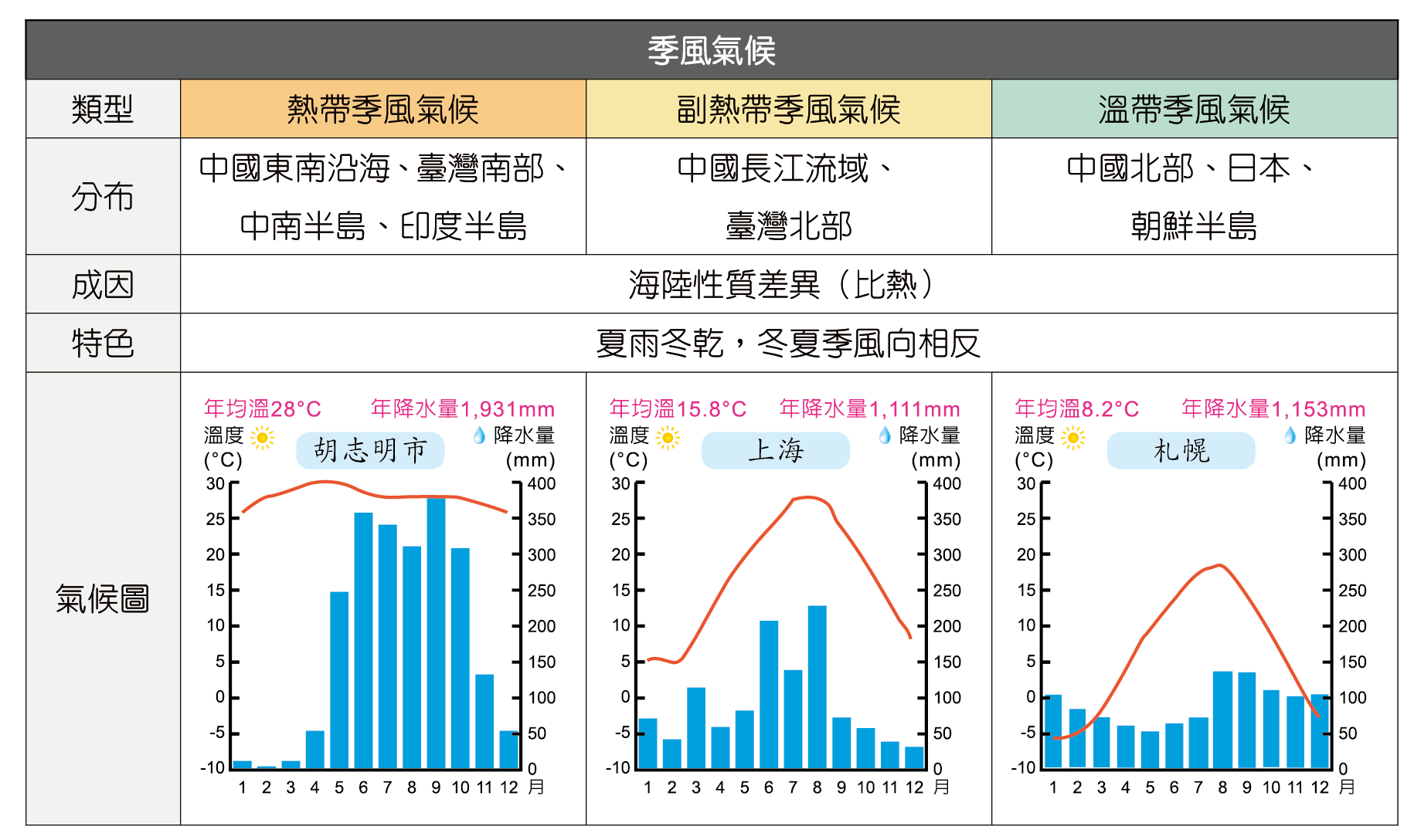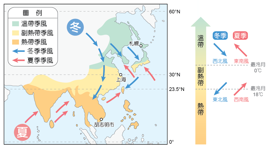 以下是季風氣候區的統整