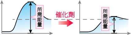 催化劑是透過「提供不同的反應途徑」來降低能量,如圖(二)。
