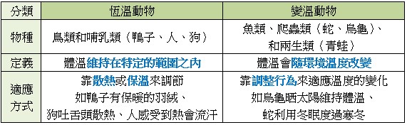 恆溫動物和變溫動物: