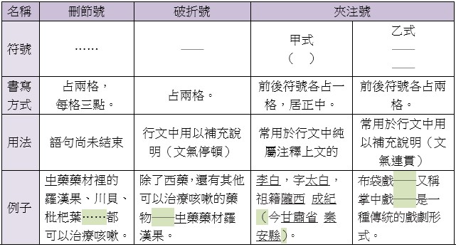 下面便列出刪節號、破折號、夾注號的差別。