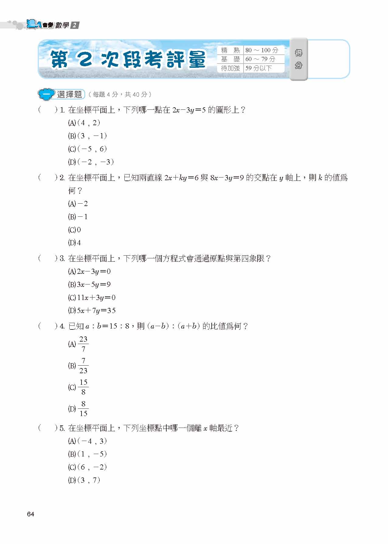 進 單冊講義 - 康版數學(2)